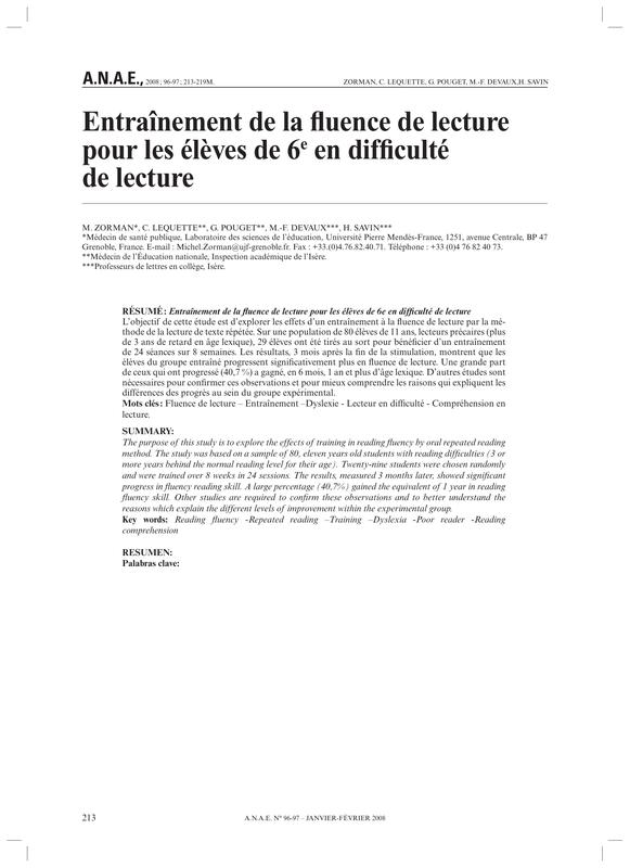 Dossier pédagogique: La fluence