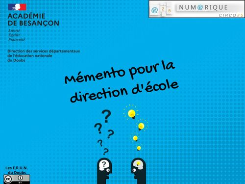 Les E.R.U.N. du Doubs, académie de Besançon, mettent à disposition des directeurs du 1er degré un livre numérique regroupant des tutoriels vidéos (utilisation de ONDE, applications académiques…).read.bookcreator.com