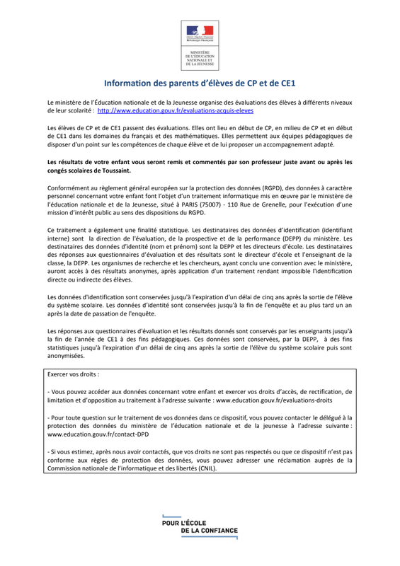 Mentions Legales Evaluation CP CE1 2019
