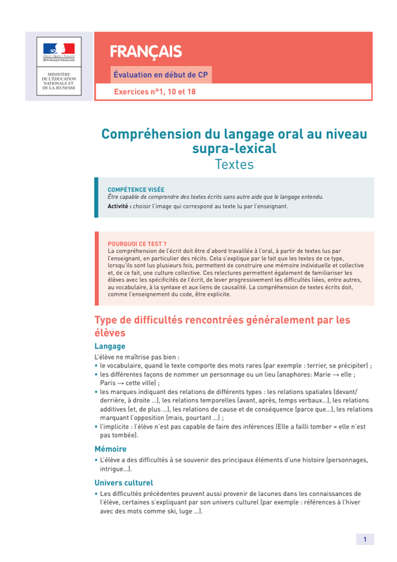 Ev18 C2 Francais Comprehension Langage Oral Supra Lexical Textes E1 E10 E18