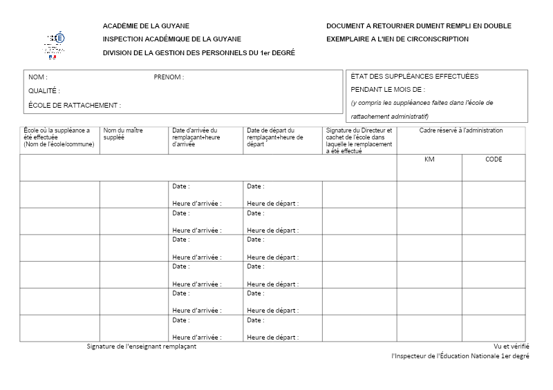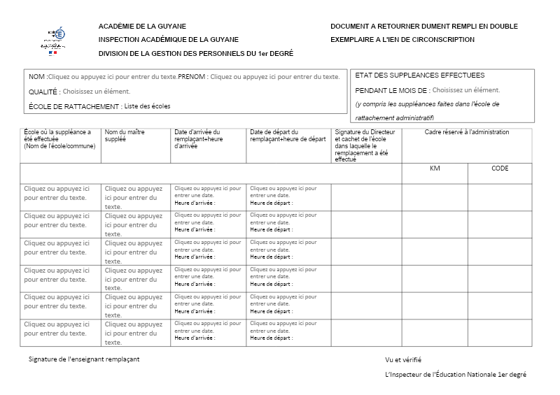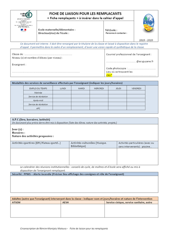 Fiche De Liaison Pour Les Remplaçants