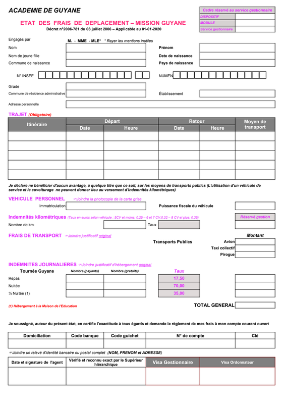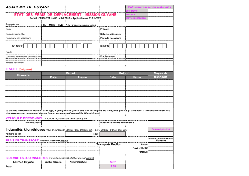 Indemnités frais de déplacement