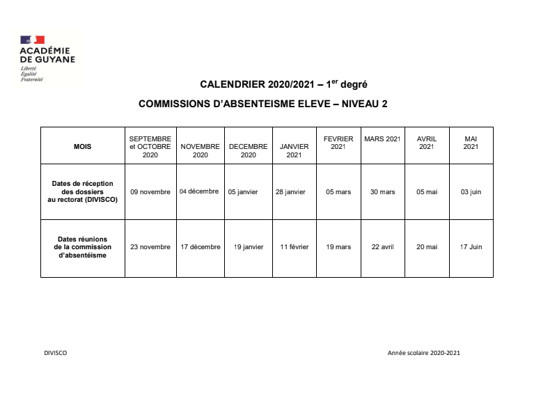 Calendrier Gestion Commission Absenteisme 2020 2021 1Er Degre