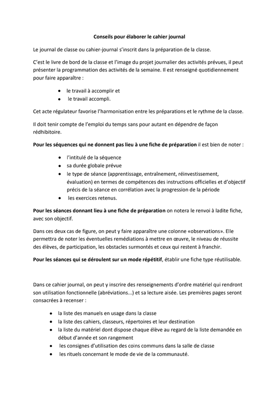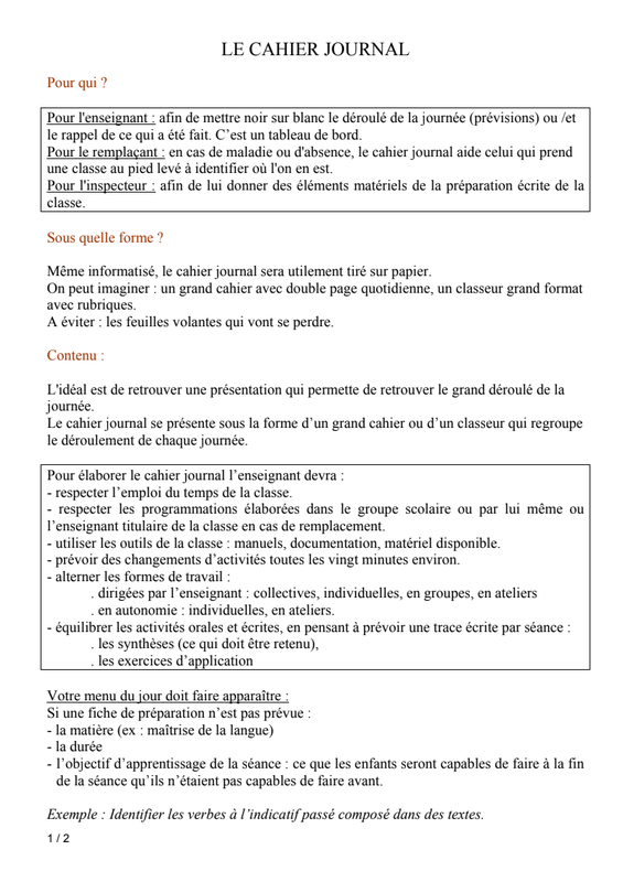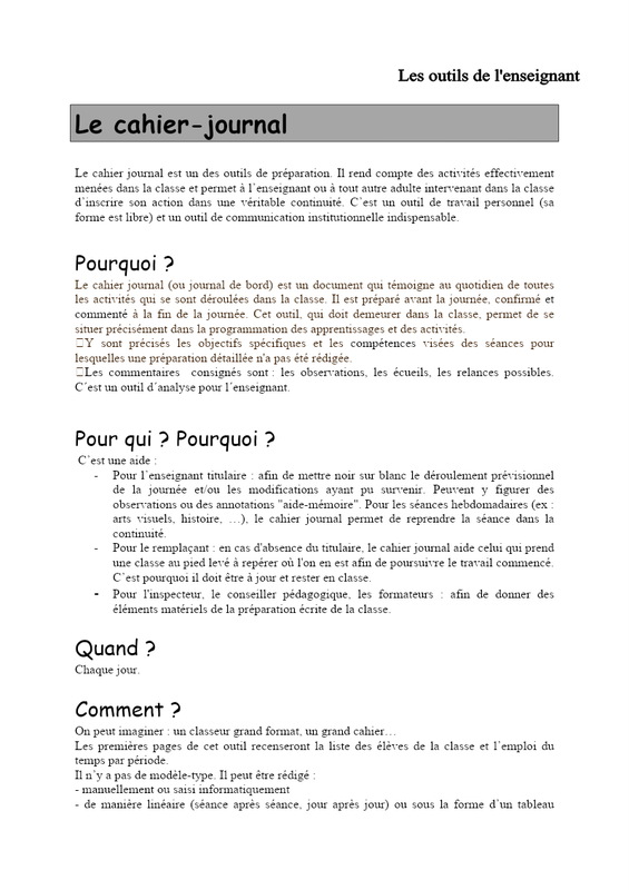 « Cette proposition de cahier journal permet de prendre en compte et d’anticiper dans la préparation de
