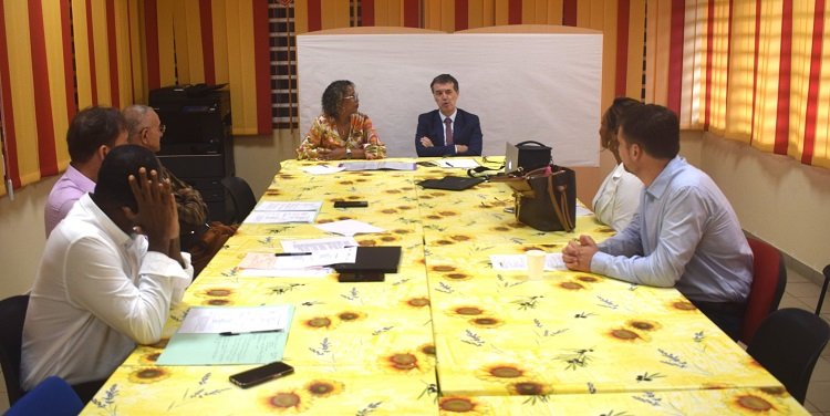 " Methon-nous au numérique". Faire émerger dans le cadre de concertations locales des initiatives nouvelles de nature à améliorer la réussite, le bien-être des élèves et à réduire les inégalités, tel est l’objectif de la démarche pour « faire notre école ensemble ». Dans le cadre des discussions au cœur des territoires pour faire émerger l’école du futur, le Recteur d’académie, M. Philippe Dulbecco s’est rendu ce 08 février 2023 à l’école maternelle Saint-Ange Methon ( circonscription de Rémire-Montjoly Matoury). Cette réunion de travail a permis de rassembler les différents partenaires associés à ce projet fédérateur ayant pour objectif l’élévation du niveau des élèves. Les échanges fructueux qui s’en sont ensuivis, devront permettre à la directrice (Mme Marie-France Bienvenu) et à sa dynamique équipe pédagogique d’engager une réflexion supplémentaire sur les axes du projet à améliorer, à préciser ou à conforter afin d’obtenir une validation institutionnelle indispensable à son financement. Cette réunion de travail avec le 1er adjoint au maire (M.Serge Félix), le DGS de la mairie de Rémire-Montjoly (M.Camilus Rabin) , l’IEN CCPD (Mme Luciana Boicel), l’adjoint au DANE 1er degré (M.Franck Frérot), le directeur de la Canope ( M.Denis Wiedner-Papin) et le CPNE ( M.Médéric Pepin ) s’inscrit dans cette nouvelle démarche de concertation centrée sur les besoins et la réussite des élèves, associant tous les membres de la communauté éducative et partenaires de l’école.
