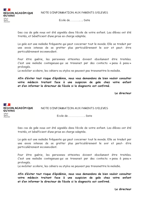 Gale Note Information Aux Parents Modèle