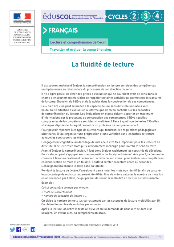 La Fluence en lecture au cycle 3