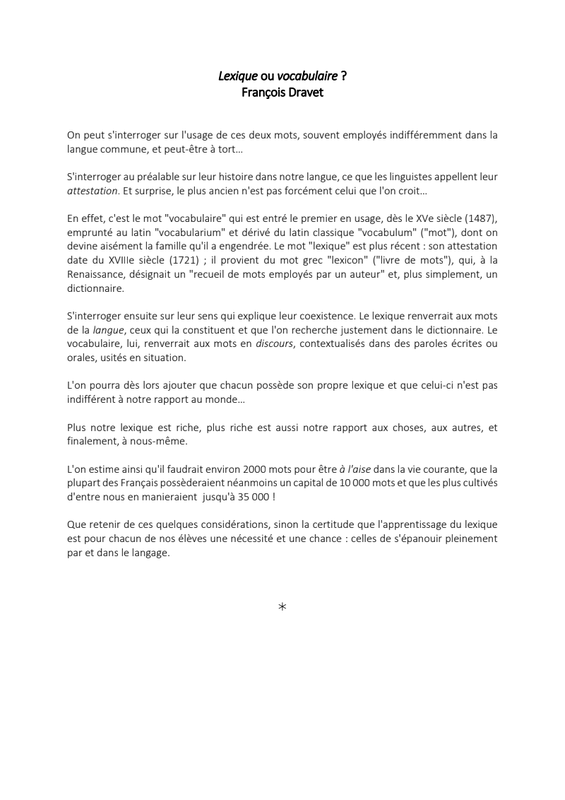 Introduction Lexique Ou Vocabulaire