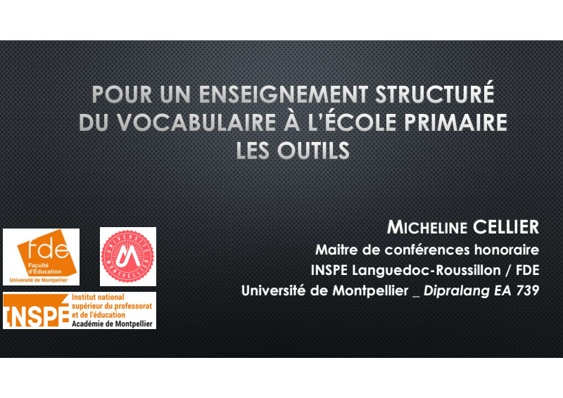 Pour un enseignement structuré du vocabulaire à l’école : les outils