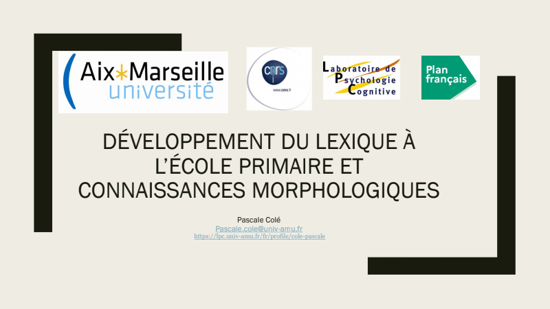 Développement du Lexique à l'école et connaissances morphologiques