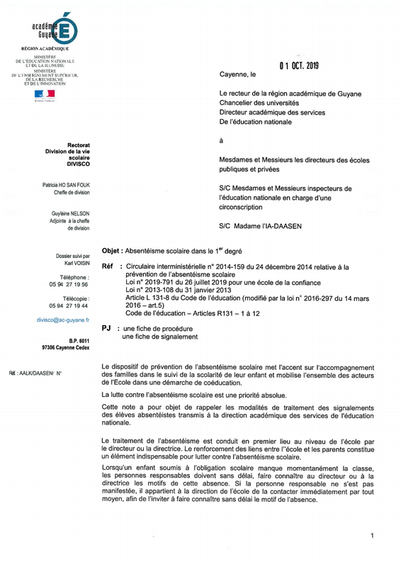 Circulaire Assiduité DIVISCO