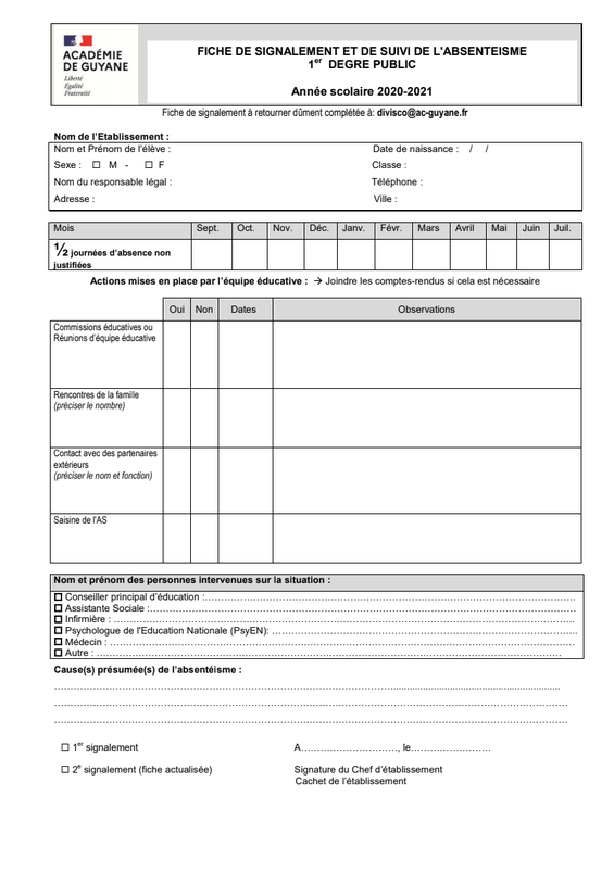 Fiche De Signalement 2020 2021 1Er Degre