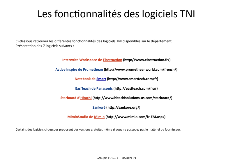 Fonctionnalités Tni